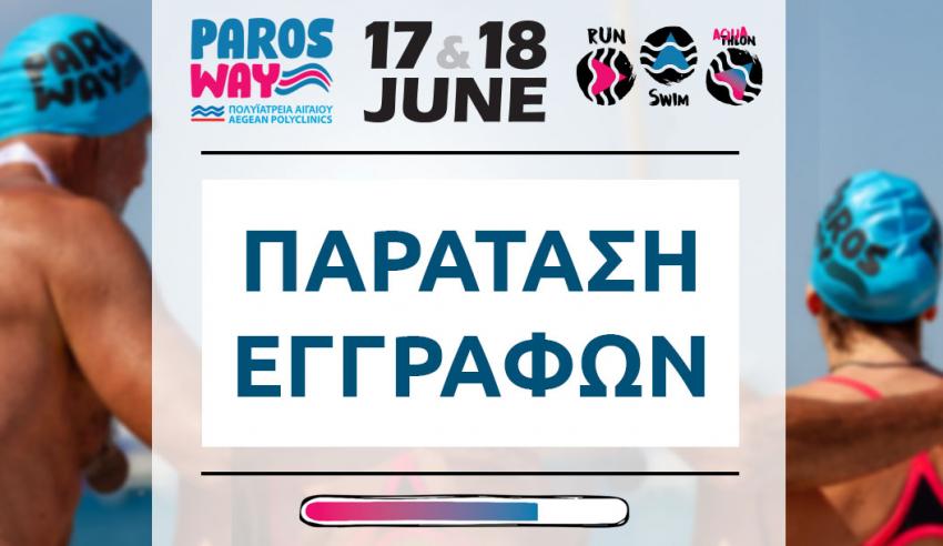 Ύστερα όμως από επιθυμία πολλών ενδιαφερομένων, η Οργανωτική Επιτροπή ενημερώνει ότι οι εγγραφές άνοιξαν και πάλι, είναι ενεργές και θα παραμείνουν μέχρι την προσεχή Κυριακή 11/06 στις 12 το βράδυ και είναι διαθέσιμες μόνο στην ιστοσελίδα της διοργάνωσης www.parosway.gr.