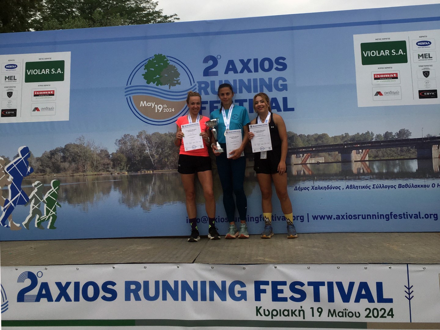 Στον Διεθνή Ημιμαραθώνιο Δρόμο - International Axios Gold Half Marathon που είχε ως αφετηρία το Δημαρχείο Κουφαλίων, νικητές στην κατηγορία Ανδρών αναδείχθηκαν κατά σειρά ο Σταύρος Αγιαννίδης (1 ώρα 18:54), ο Πέτρος Μηνάς (1 ώρα 22:11) και ο Εμμανουήλ-Μάριος Χατζηνικολάου (1 ώρα 24:18), ενώ στην κατηγορία Γυναικών επικράτησε η πρωταθλήτρια των δρόμων αντοχής Στέφανι Λεοντιάδου (1 ώρα 36:22), που κέρδισε στο νήμα του τερματισμού την Άννα Πέγια (1 ώρα 36:22), ενώ την τριάδα συμπλήρωσε η Μαρία Καβουρίδου (1 ώρα 41:31).