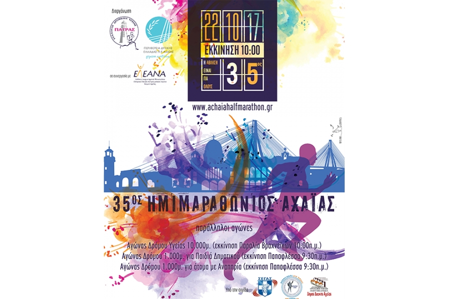 Ο «Ημιμαραθώνιος Αχαΐας», ο οποίος διανύει φέτος την 35η χρονιά διοργάνωσής του, αποτελεί ένα μεγάλο αθλητικό γεγονός της πόλης, με δεκάδες συμμετοχές από την Ελλάδα και την Κύπρο, γεμίζοντας χαμόγελα το κέντρο της πόλης, όπου θα γίνουν και όλοι οι τερματισμοί των δρομέων. Στόχος της διοργάνωσης παραμένει πάντα η συνεχής αναβάθμιση και εξέλιξη του αγώνα ως προς την ποιότητα και αύξηση των συμμετοχών, αλλά και η παροχή του υψηλότερου δυνατού επιπέδου υπηρεσιών στους συμμετέχοντες δρομείς.