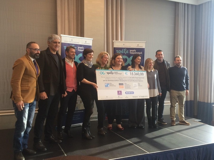 Την επιταγή παρέδωσαν συμβολικά, ο Γιάννης Νικολάου και η Σοφία Κέδε από τον διοργανωτή Ερμή 1877 μαζί με τους εκπρόσωπους των δύο Μεγάλων Χορηγών, Μαριάννα Παπαδοπούλου-Χατζάκου από τη ΜΕΒΓΑΛ και Νιόβη Μέξη, διευθύντρια attica Θεσσαλονίκης, στην Πρόεδρο Φίλων Θεαγένειου, Καίτη Κοντοπούλου και στην Πρόεδρο Φίλων Μέριμνας, Ελένη Γούση.