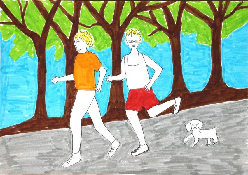 Οι μικροί καλλιτέχνες μπορούν να σχεδιάσουν ή να ζωγραφίσουν στιγμιότυπα από το μάθημα της γυμναστικής ή εικόνες από κάποιο δρομικό αγώνα που έχεουν λάβει μέρος. Αν θέλουν στη σύνθεσή τους μπορούν να συμπεριλάβουν τον εαυτό τους, τους δικούς τους ανθρώπους ή ακόμα και άλλους που έχουν δει απλά να τρέχουν.