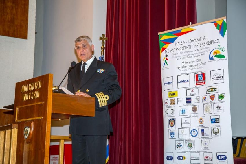Ο ταξίαρχος Παναγιώτης Γεωργόπουλος α΄ αντιπρόεδρος του Πολεμικού Μουσείου, το οποίο ευγενικά παραχώρησε τους χώρους για τη διοργάνωση των εκδηλώσεων, αναφέρθηκε στην πολεμική προετοιμασία των αρχαίων μέσω του αθλητισμού. Και τόνισε ότι το Πολεμικό Μουσείο στηρίζει ένθερμα τις προσπάθειες της Συμπολιτείας Ολυμπίας και των συνδιοργανωτών των εκδηλώσεων για το «Μονοπάτι της Εκεχειρίας».