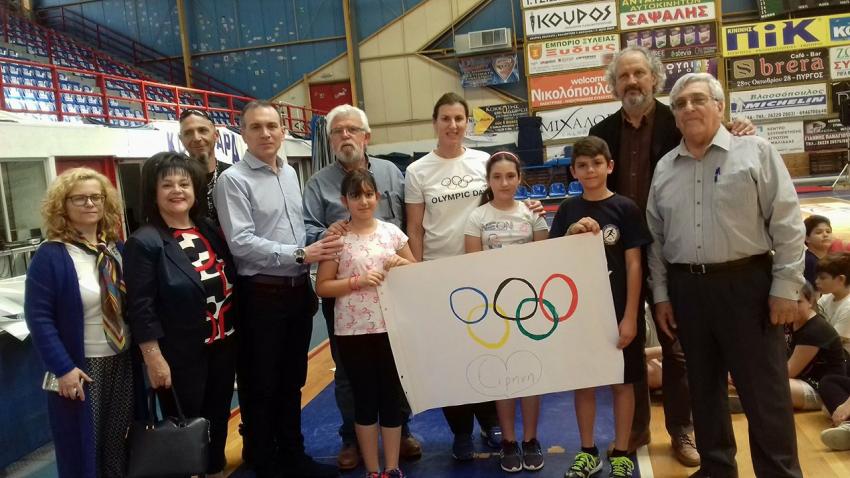 Το λόγο έλαβε στη συνέχεια η υποδιευθύντρια του Διεθνούς Κέντρου Ολυμπιακής Εκεχειρίας κα Ντόρα Πάλλη η οποία αφού παρουσίασε τους 5 Ολυμπιονίκες μας, ανέλυσε τους σκοπούς του προγράμματος, τονίζοντας ότι το εκπαιδευτικό πρόγραμμα 5 κύκλων (βάσει των 5 Ολυμπιακών κύκλων) περιλαμβάνει τη συμμετοχή μαθητών σε 5 διαφορετικούς σταθμούς, σε καθέναν από τους οποίους οι μαθητές καλούνται να εκφραστούν δημιουργικά μέσα από δραστηριότητες και να μάθουν τις τεχνικές Ολυμπιακών αθλημάτων.