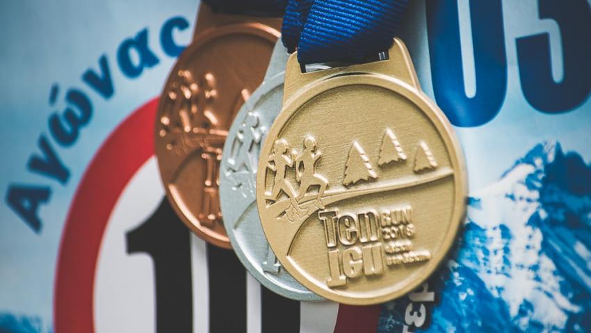 Στο θέμα του φετινού μεταλλίου, αποτυπώνεται το επίσημο σήμα του Οργανισμού Πολιτισμού (ΟΠΠΑΠ), στο οποίο δεσπόζει το εμβληματικό κτίριο της Αστικής Σχολής στη μία όψη, ενώ η άλλη όψη είναι εμπνευσμένη από το posterτης φετινής διοργάνωσης. Το μετάλλιο του αγώνα των 10 χλμ έχει σχήμα κυκλικό, ενώ το μετάλλιο του παιδικού αγώνα 1χλμ τετράγωνο.