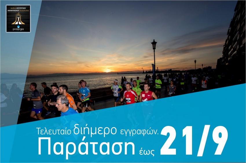 Όσοι δεν φρόντισαν να εξασφαλίσουν ήδη μία θέση στο μεγάλο νυχτερινό πάρτυ του Σαββάτου 13 Οκτωβρίου, που περιλαμβάνει τον Ημιμαραθώνιο των 21,1 χλμ., τον Δρόμο Υγείας & Δυναμικού Βαδίσματος 5.000μ., αλλά και πολλή μουσική και χρώμα στους κεντρικούς δρόμους της Θεσσαλονίκης, θα πρέπει να σπεύσουν να δηλώσουν συμμετοχή μέσα στο επόμενο διήμερο, αφού δεν θα δοθεί καμία άλλη παράταση.