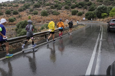 Με εξαίρεση κάποια σημεία της διαδρομής όπου ο αέρας και η βροχή λειτούργησαν ως τροχοπέδη στις προσπάθειες των Σπαρταθλητών, ο καιρός είναι ιδανικός για υπεραποστάσεις , καθώς η απαλή βροχή και η έλλειψη ηλίου τους παρέχουν μια ανάσα δροσιάς, προκειμένου να συνεχίσουν την υπερπροσπάθειά τους. Αυτό το παρατηρούμε και από το ότι εν αντιθέσει με τις καιρικές προγνώσεις, δεν έχει εγκαταλείψει κανείς το «εισιτήριο» για το όνειρο.