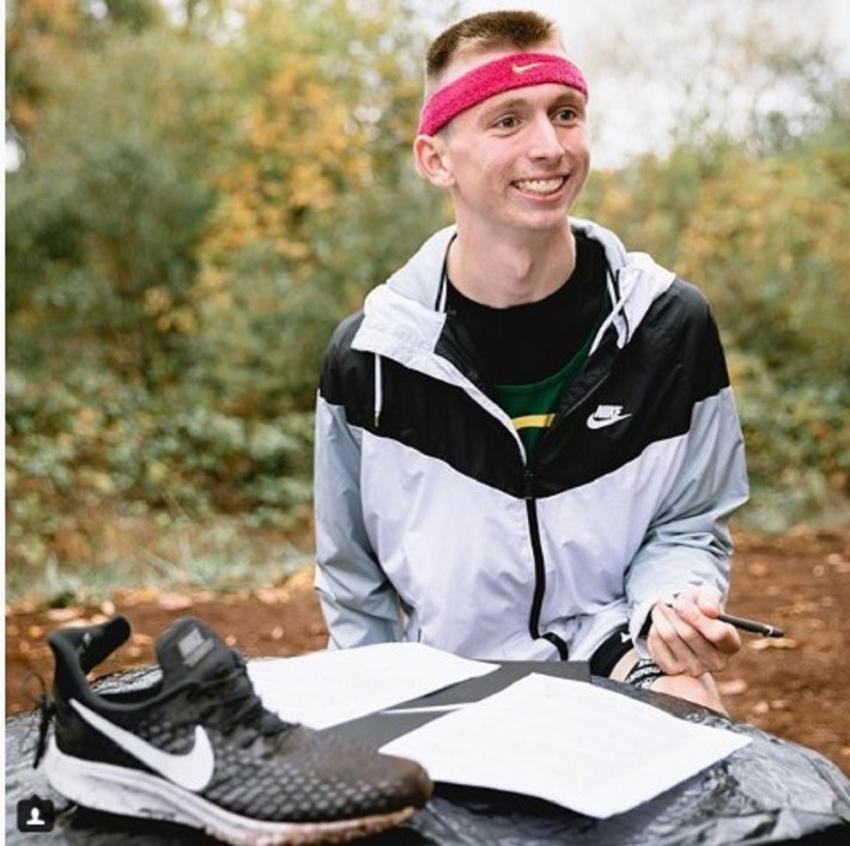Ο Justin Gallegos άκουσε τα συναρπαστικά νέα από τον διευθυντή της Nike, John Douglass, ο οποίος εξέπληξε τον δρομέα, παρουσιάζοντάς του ένα τριετές συμβόλαιο.
