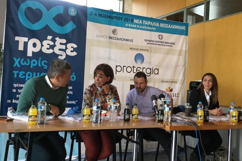 Επίσης μίλησαν για τον αγώνα, ο Αλέξανδρος Μπαρμπουνάκης, Αντιδήμαρχος Αθλητισμού του Δήμου Θεσσαλονίκης που διοργανώνει το Τρέξε Χωρίς Τερματισμό μαζί με τον αθλητικό σύλλογο «Ερμής 1877», τον οποίο εκπροσώπησε ο Γιάννης Νικολάου και η Δέσποινα Ιορδανίδου εκ μέρους του τμήματος επειγόντων της παιδιατρικής πτέρυγας του «Ιπποκρατείου» στο οποίο μαζί με δημοτικό βρεφοκομείο «Άγιος Στυλιανός» θα δοθούν τα χρήματα από τα χιλιόμετρα που θα καλύψουν οι δρομείς.
