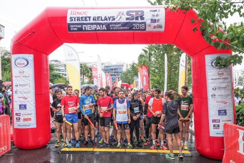 Η Βίκος, η κορυφαία ελληνική βιομηχανία νερών και αναψυκτικών, είναι ο Ονομαστικός Χορηγός των Street Relays για έκτη συνεχή χρονιά, ενώ η WATT+VOLT, η κορυφαία ελληνική εταιρεία παροχής ολοκληρωμένων υπηρεσιών ενέργειας, είναι ο Μεγάλος Χορηγός των αγώνων. Επίσημος Χορηγός είναι η Interwetten, ένα από τα σημαντικότερα διεθνή brand names στο χώρο του online gaming, το οποίο συνδυάζει κορυφαία ασφάλεια και αξιοπιστία, καθώς το Ypostirixis Group. Μεγάλοι υποστηρικτές είναι η κορυφαία εταιρεία αθλητικών ειδών Saucony, η νo 1 θερμαντική αναλγητική κρέμα Counterpain και τα καταστήματα αθλητικών ειδών Intersport.