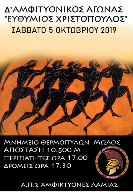 Ο «Α.Π.Σ ΑΦΜΙΚΤΥΟΝΕΣ ΛΑΜΙΑΣ» (Τμήμα Δρομέων και Περιπατητών) προκηρύσσει τον « 4ο ΑΜΦΙΚΤΥΟΝΙΚΟ ΑΓΩΝΑ ΔΡΟΜΟΥ Ευθύμιος Χριστόπουλος προς τιμή του ιερού χώρου, όπου πραγματοποιούνταν οι πρώτες Αμφικτυονικές σνεδριάσεις αφιερωμένες στην Πυλαία Δήμητρα (Αρχαία Ανθήλη), από το 1522π.χ. έως το 300μ.χ.