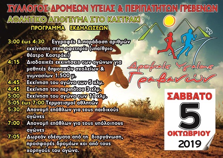 3:00 έως 4:30 Εγγραφές & παράδοση αριθμών εκκίνησης στην αφετηρία (υπαίθριο θέατρο Καστράκι)