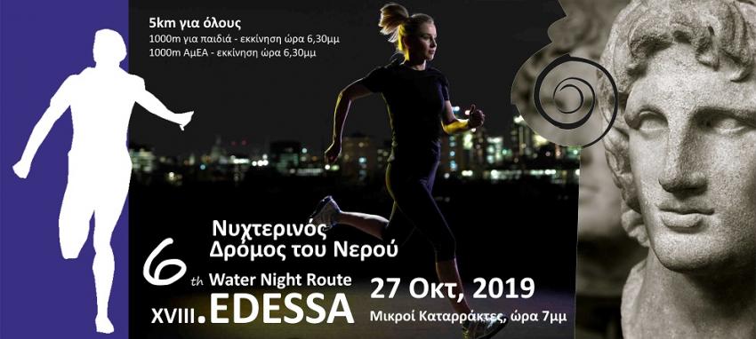 6oς Νυχτερινός Δρόμος του Νερού Έδεσσας, Κυριακή 27 Οκτωβρίου 2019 Στην Έδεσσα, την πρωτεύουσα του Ν.Πέλλας με 3000 χρόνια αδιάκοπης ιστορίας.