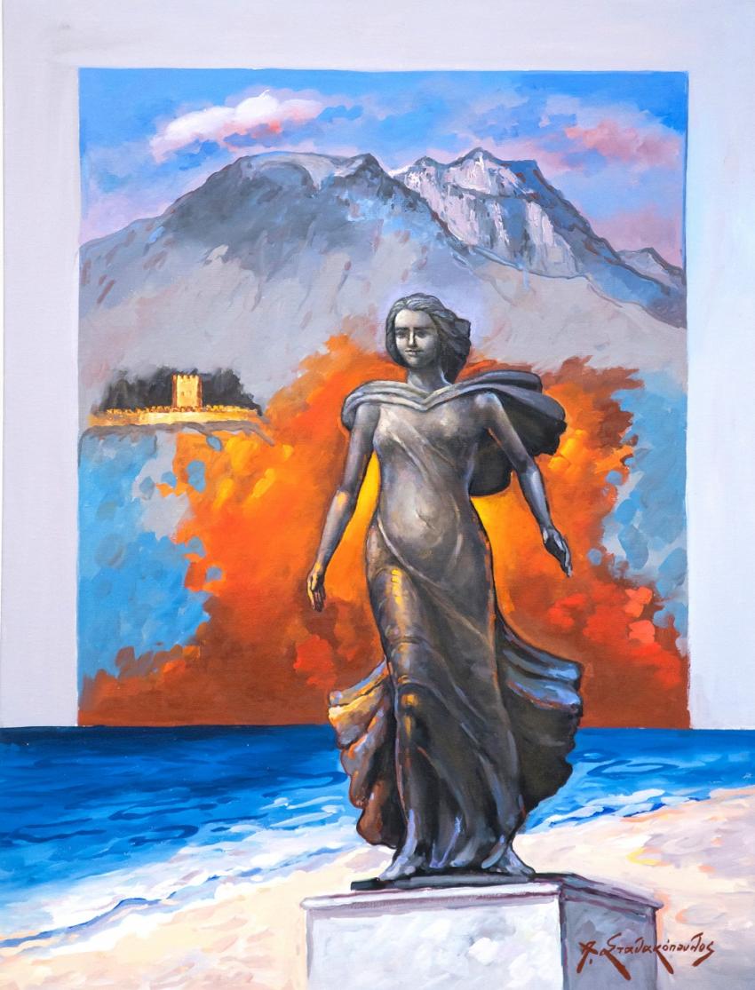 Ειδικότερα, το τραίνο για την Κατερίνη, που σε στίχους του αείμνηστου Μάνου Ελευθερίου μελοποίησε ο Μίκης Θεοδωράκης και αποτέλεσε πηγή έμπνευσης για τον καταξιωμένο συμπολίτη μας ζωγράφο Αθανάσιο Σταθακόπουλο, που με μεγάλη χαρά αποδέχτηκε την πρόταση, να είναι ο πίνακας που φιλοτέχνησε, το θέμα του συλλεκτικού μεταλλίου.