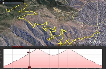 Η διαδρομή ταυτίζεται και για τους τρεις αγώνες μέχρι το 3ο χλμ (Διασταύρωση μετά την Αγία Ειρήνη) από εκεί ο αγώνας των 27 χλμ θα έχει πορεία δεξιά (κίτρινη γραμμή) και ενδείκνυται για έμπειρους αθλητές βουνού, ενώ οι αγώνες των 15 κ 8.5 χλμ θα έχουν πορεία αριστερά (κόκκινη γραμμή) και ενδείκνυνται τόσο για αρχάριους όσο και για έμπειρους δρομείς. (επισυνάπτονται σχεδιαγράμματα)
