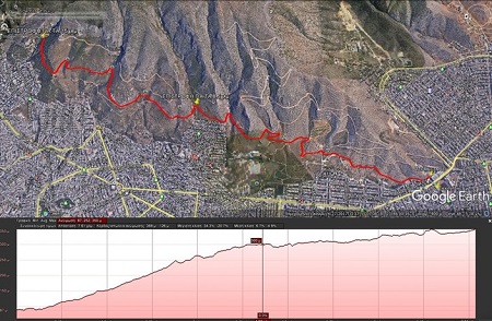 β) Διαδρομή 15 χλμ: Από την εκκίνηση έως το 4,0χλμ η διαδρομή είναι ανηφορική, μετά σχεδόν επίπεδη ενώ από το 5,5χλμ μέχρι το 7,5χλμ (Μονή Αγ. Ιωάννη Καρέα) γίνεται ήπια ανηφορική. Θετική υψομετρική 270μ. Χρονικό όριο ολοκλήρωσης 2,5 ώρες