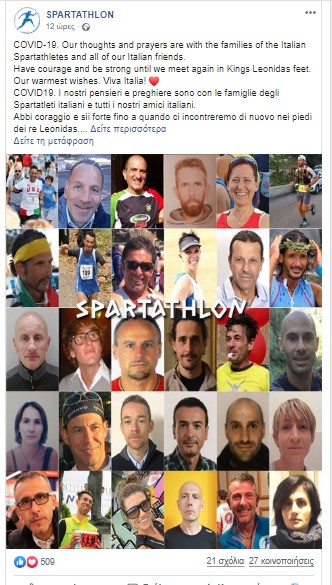 COVID-19. Οι σκέψεις και οι προσευχές μας είναι με τις οικογένειες των Ιταλών Σπαρταθλητών και όλων των Ιταλών φίλων μας.