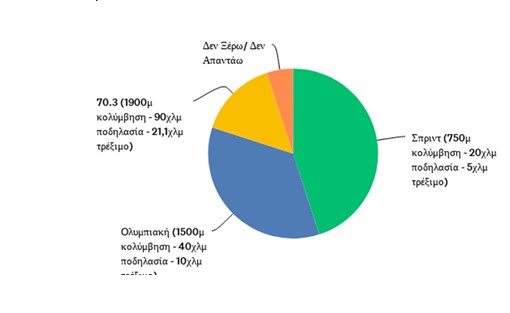 Στην Τρίτη θέση είναι η απόσταση του 70.3 με ποσοστό 15 % να την επιλέγουν.