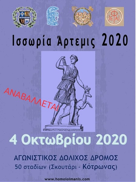 Το ραντεβού μας για τη μοναδική δρομική διαδρομή ΙΣΣΩΡΙΑ ΑΡΤΕΜΙΣ Αγωνιστικός Δόλιχος Δρόμος στην Μάνη (4/10), από το Σκούταρι στον Κότρωνα, αναβάλλονται λόγω των μέτρων για την αντιμετώπιση του covid 19.