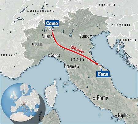 Ο 48χρονος Ιταλός πήγε συγκεκριμένα, για μια πεζοπορία για να ηρεμήσει τα νεύρα του μετά από έναν θερμό τσακωμό με την σύζυγό του. Έφυγε από το Κόμο στα βόρεια της Ιταλίας και έφτασε μέχρι τον νότο, διανύοντας περίπου 65 χιλιόμετρα την ημέρα. Ο άντρας που δεν έχει κατονομαστεί, έφτασε τελικά στο παραθαλάσσιο θέρετρο του Φάνο στην ακτή της Αδριατικής.