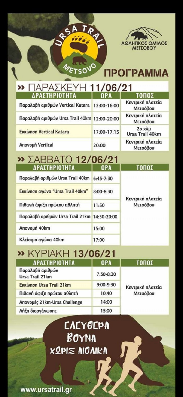 Η διοργάνωση ορεινού τρεξίματος Ursa Trail ξεκινά σήμερα στο υπέροχο Μέτσοβο και θα διαρκέσει μέχρι και την Κυριακή 13/06