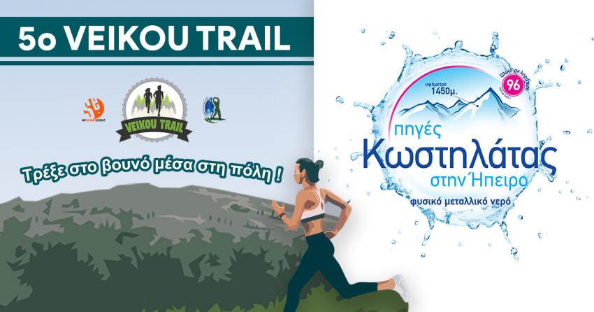 Όλοι οι συμμετέχοντες του 5ου Veikou Trail θα ενυδατώνονται καθ’ όλη τη διάρκεια της διοργάνωσης με το Φυσικό Μεταλλικό Νερό Πηγές Κωστηλάτας στην Ήπειρο, που εγγυάται την ιδανική λειτουργία του οργανισμού κατά την άθληση, αλλά και την αποκατάσταση. Ειδικά στη φετινή διοργάνωση, που θα πραγματοποιηθεί σε θερμό κλίμα, η παρουσία άφθονου και ποιοτικού νερού, κρίνεται επιβεβλημένη.