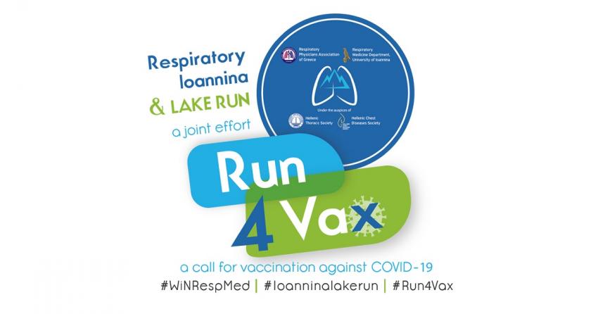 Με αφορμή τη διοργάνωση του πανελλήνιου ιατρικού συνεδρίου What is New in Respiratory Medicine, που πραγματοποιείται στα Ιωάννινα στις 16-19 Σεπτεμβρίου 2021 και το οποίο συμπίπτει χρονικά με τη διεξαγωγή του Ioannina Lake Run στις 18-19 Σεπτεμβρίου, θα λάβει χώρα η καμπάνια #Run4Vax, ένα κάλεσμα για δράση ενάντια στην covid-19.