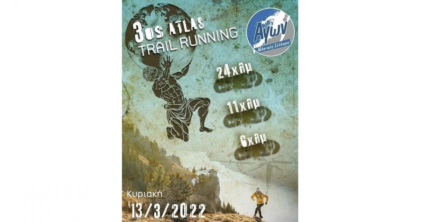 Την Κυριακή 13 Μαρτίου 2022 θα πραγματοποιηθεί στην περιοχή της Μαλακάσας, η διοργάνωση ορεινού τρεξίματος 3ος Atlas Trail Running, από τον Α.Σ. Αγών.