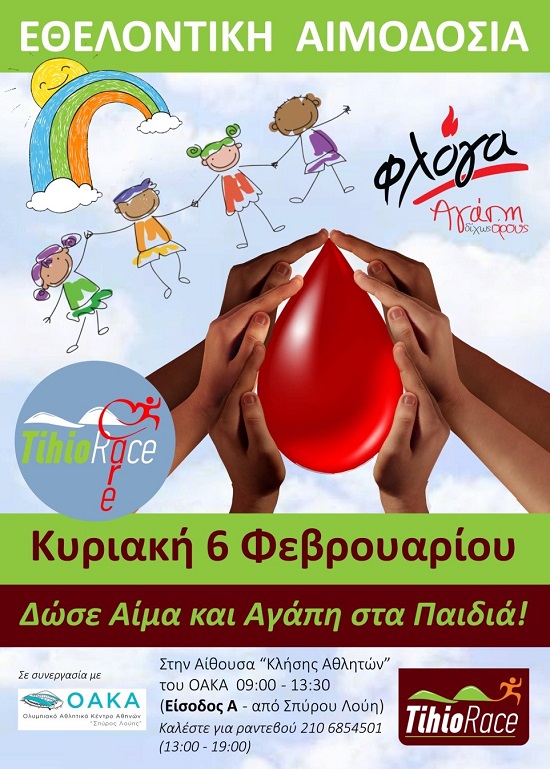 Η εκδήλωση Αιμοδοσίας θα υλοποιηθεί στην Αίθουσα Κλήσης των Αθλητών στο ΟΑΚΑ (Είσοδος Α) την Κυριακή 6 Φεβρουαρίου στις 09:00 – 13:30