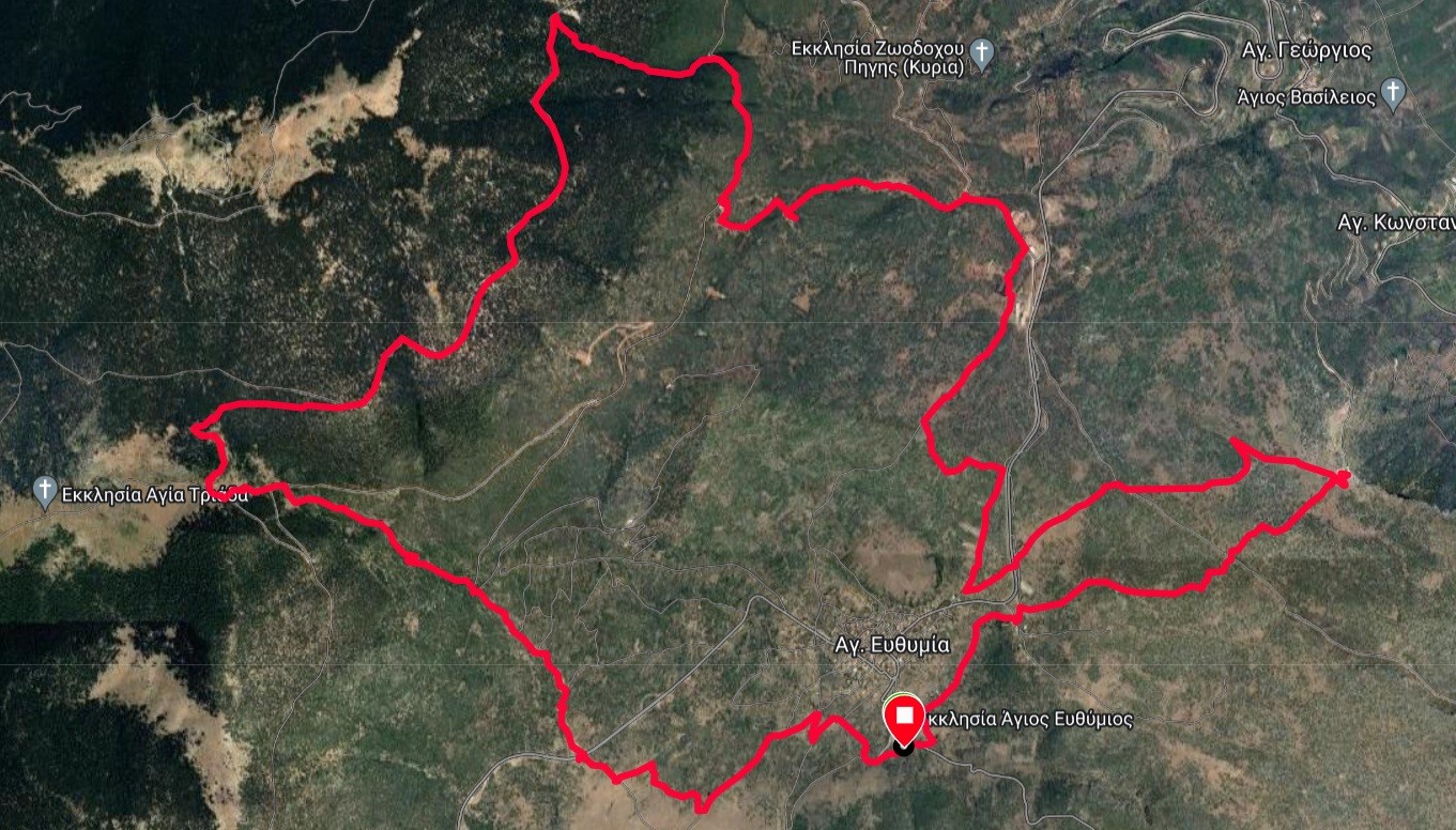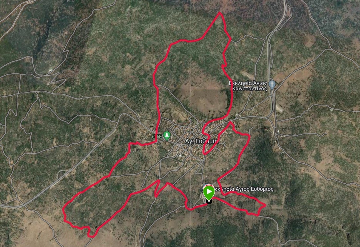 Ο αγώνας ξεκινάει με 4,5 χλμ περίπου αγροτικό δρόμο με μικρές εναλλαγες, γύρω από το χωριό που τον φέρνει σε ανηφορικό μονοπάτι 500 μέτρων για να φτάσει κάτω από τον “Σταυρό” (όπου συναντά τη διαδρομή των 24,7 χλμ για λίγα μέτρα). Στη συνέχεια ακολουθεί 1,5 χλμ με θέα το χωριό το οποίο ολοκληρώνει το γύρο της “Καταβόθρας” και μπαίνει στο χωριό για 1 περίπου χλμ. Ακολουθεί μικρό μονοπάτι που βγαίνει στον “Λούμπακα”, μικρή διαδρομή σε αγροτικό δρόμο και ξανά μονοπάτι μέσα στου “Ντάρα το Ρέμα” για να ανέβει στον δρόμο Ιτέας - Αγίας Ευθυμίας και να τερματίσει μετά από 500 μέτρα ασφάλτου.