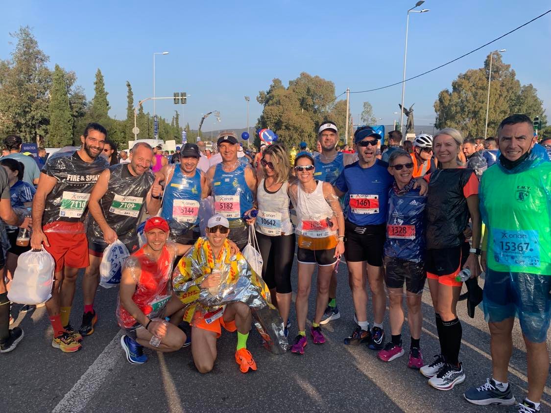 Νωρίς το πρωί της Κυριακής περισσότεροι από 70 μαραθωνοδρόμοι μας μετέβησαν με το λεωφορείο της αποστολής στην πόλη του Μαραθώνα. Εκεί μαζί με άλλους 16.000 δρομείς από 92 χώρες λάβανε εκκίνηση λίγο μετά τις 9:00 από τον Μαραθώνα για να διανύσουν μια πραγματικά απαιτητική διαδρομή με 320 μέτρα θετικής υψομετρικής διαφοράς και μετά από 42,2 χλμ να βιώσουν το μοναδικό συναίσθημα του τερματισμού στο Καλλιμάρμαρο στάδιο στην πιο ιστορική μαραθώνια διαδρομή.