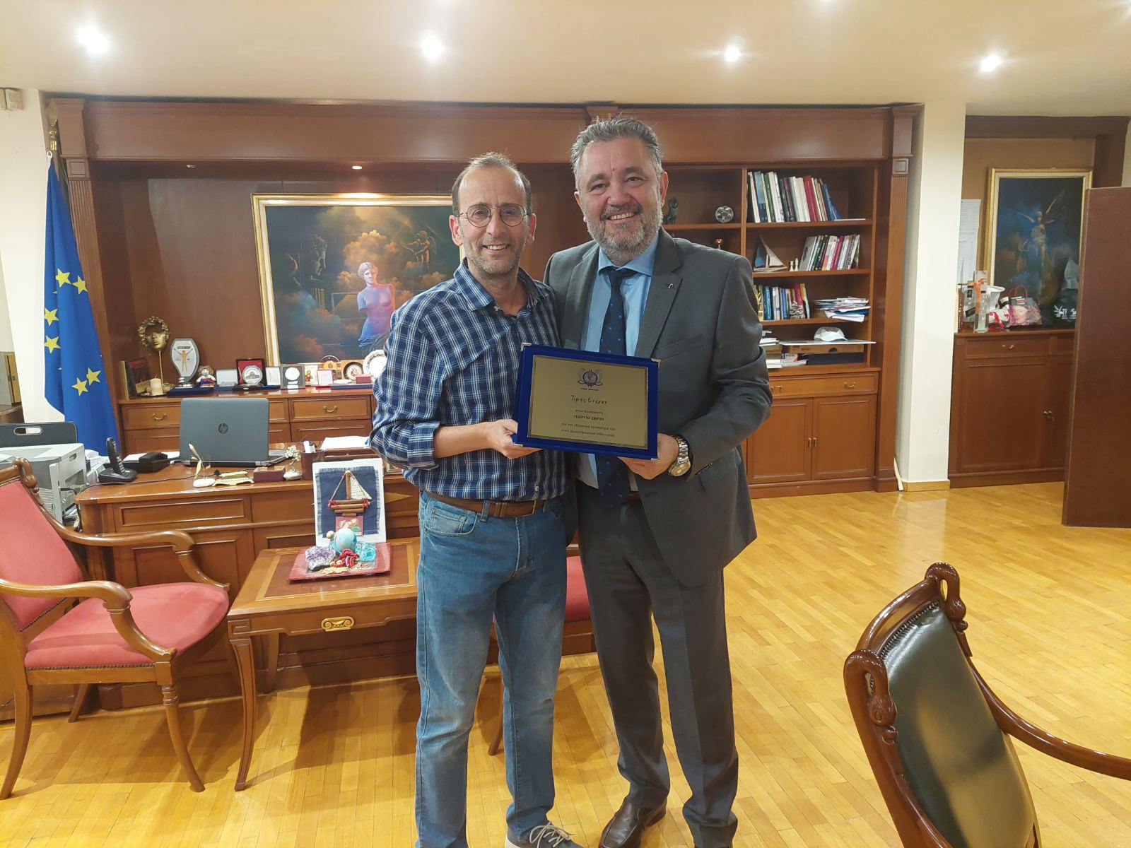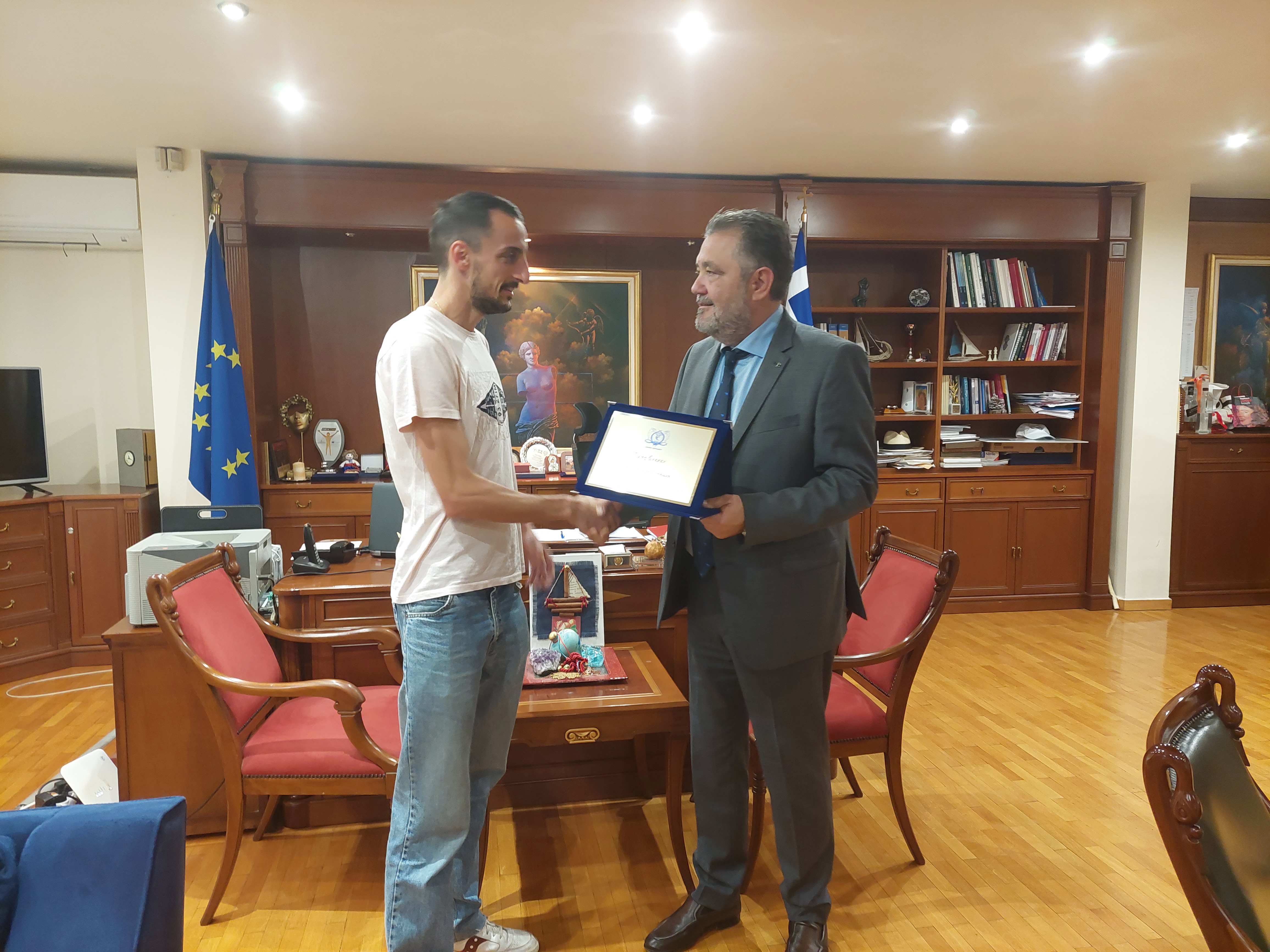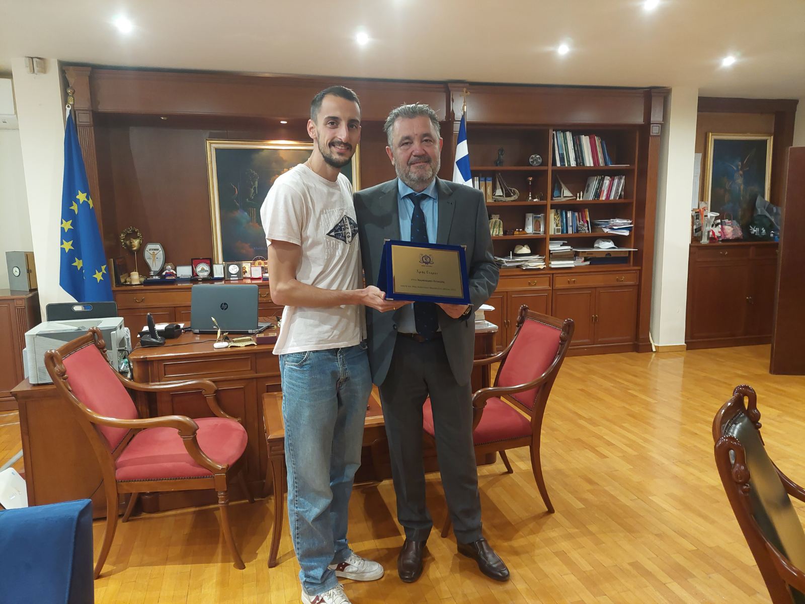 Ο κ. Θώδας συνεχάρη τους δύο άνδρες για την τεράστια επιτυχία και απένειμε τιμητική πλακέτα, επισημαίνοντας πως «η απόδοση της πλακέτας είναι μία ένδειξη αναγνώρισης της συμβολής σας στην προαγωγή του αθλητισμού αλλά και μία έμπρακτη κατάθεση ευχαριστιών για την τιμή που επιφυλάξατε στην πόλη μας, με αυτή την επιτυχία».