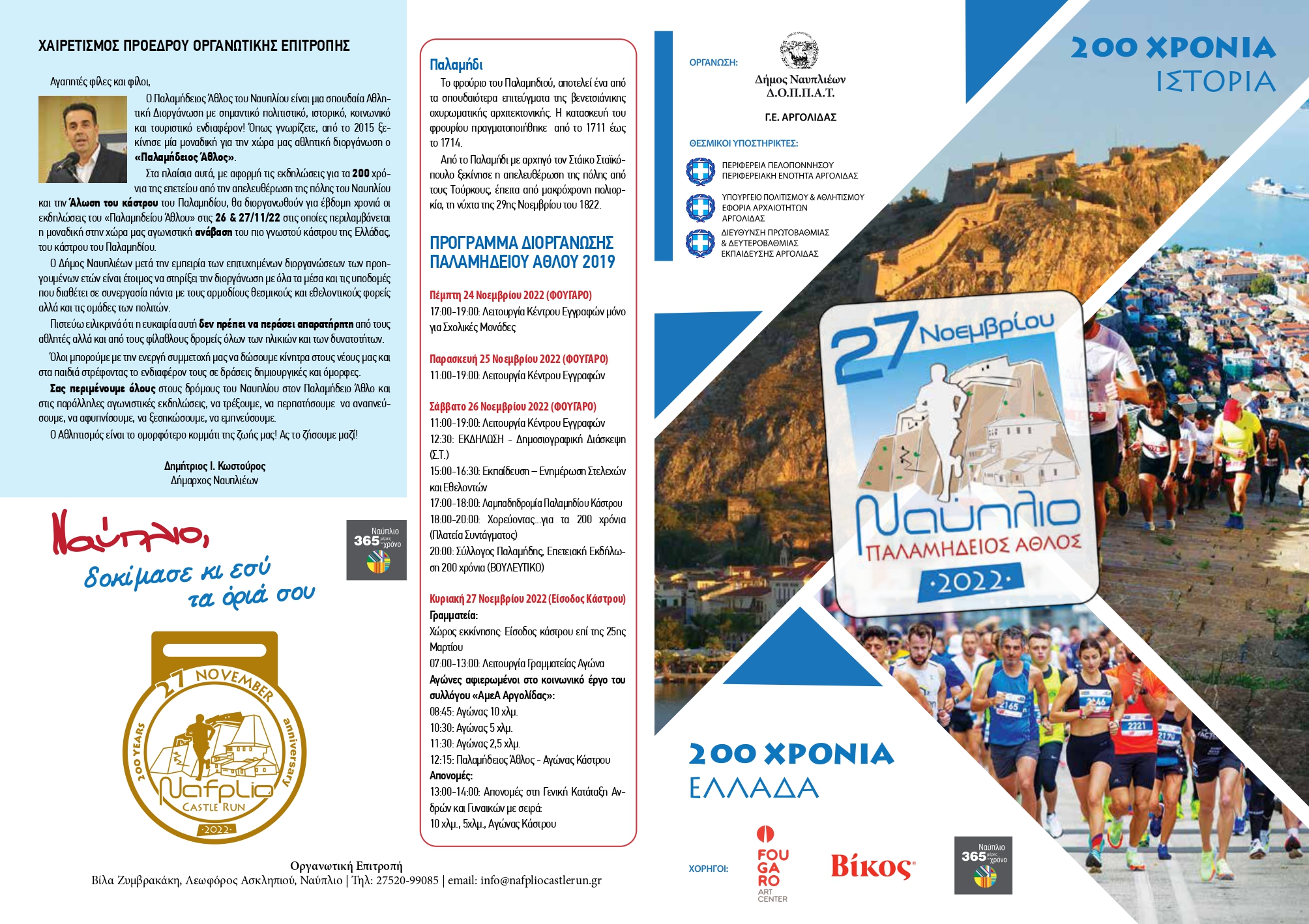 Οι ενδιαφερόμενοι μπορούν να αναζητήσουν και να αντλήσουν πλήθος πληροφοριών στο website: https://www.nafpliocastlerun.gr/ και στο Facebook της Διοργάνωσης: https://www.facebook.com/nafpliocastlerun/