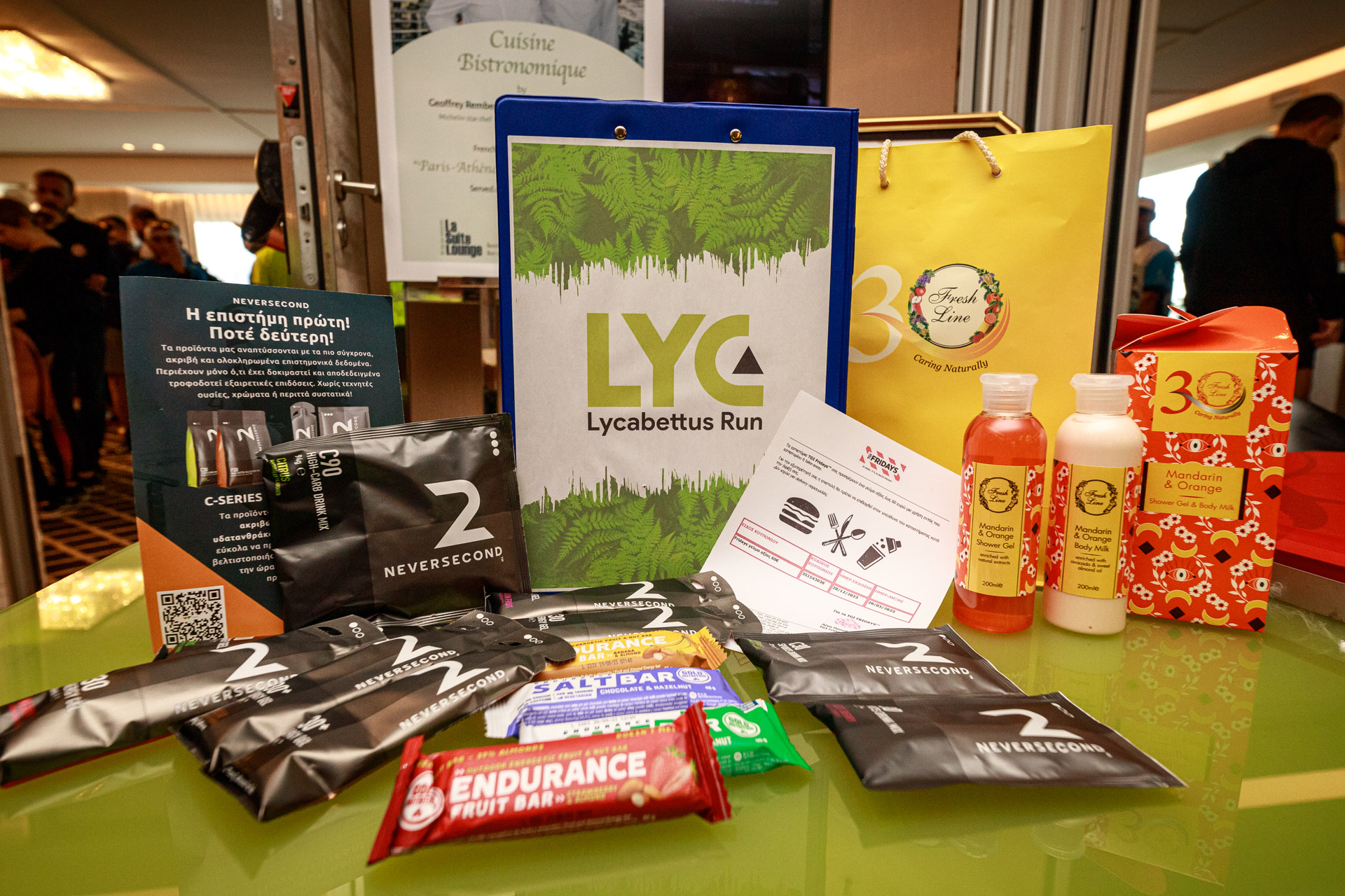 Την Neversecond και Gold Nutrition χορηγούς της διοργάνωσης. Οι 60 νικητές που ανέβηκαν στο βάθρο παρέλαβαν προϊόντα της εταιρίας που τελειοποιούν την ενέργεια την ώρα του αγώνα ή της προπόνησής. Επίσης εντός του ξενοδοχείου σε ειδικά διαμορφωμένο χώρο υπήρχε εκτενής παρουσίαση των προϊόντων και δυνατότητα απόκτησης τους.