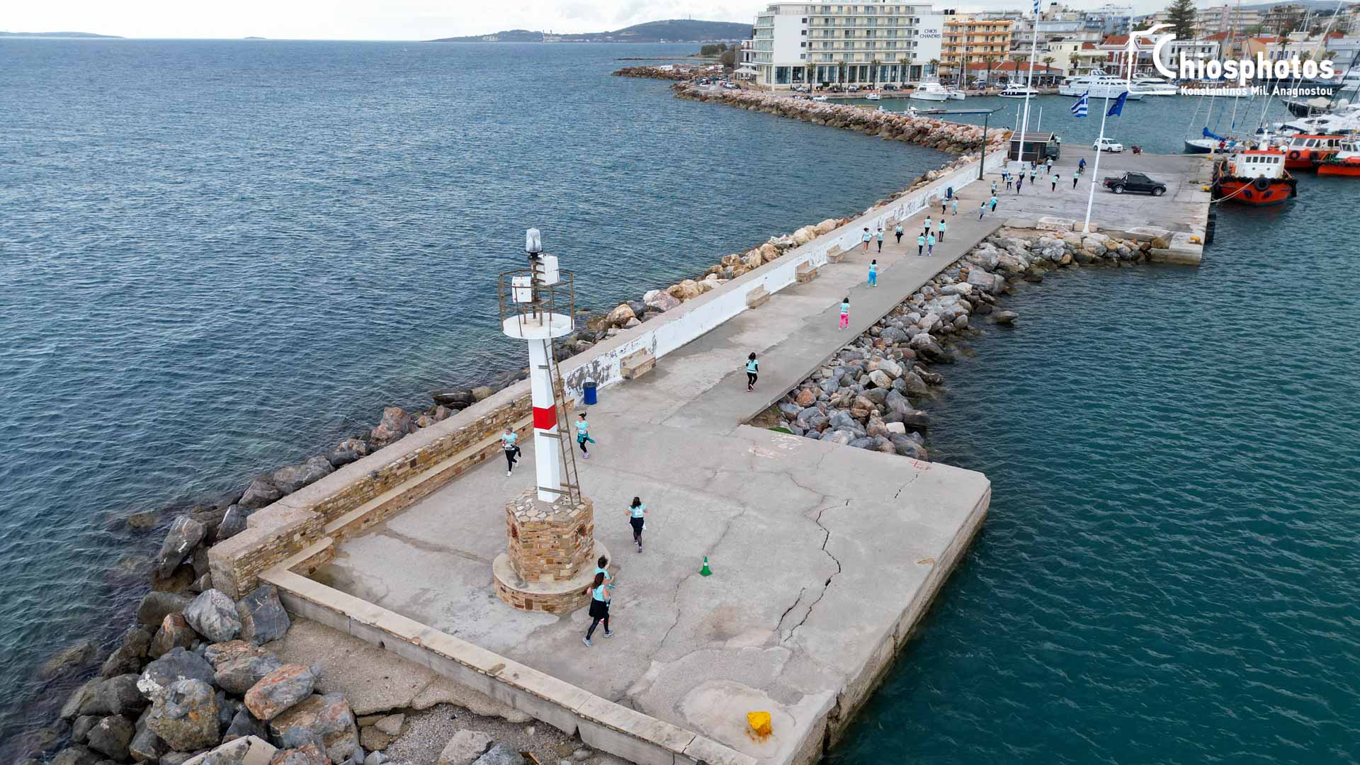 Ένας συμβολικός αγώνας 5 χλμ που δεν έχει ανταγωνιστικό χαρακτήρα, σε μία πολύ ωραία διαδρομή που περνάει από τα στενά της πόλης, το λιμάνι αλλά και τα γραφικά δρομάκια του κάστρου της Χίου για να καταλήξει στην κεντρική πλατεία του νησιού.