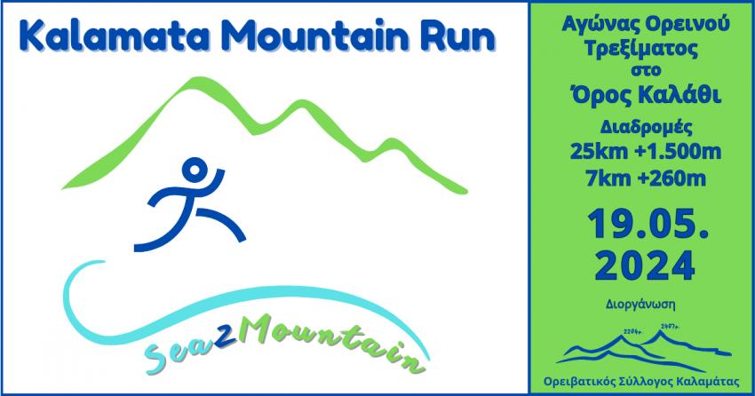 Ο Ορειβατικός Σύλλογος Καλαμάτας σε συνεργασία με τον Δήμο Καλαμάτας διοργανώνει στις 19 Μαΐου 2024 το 1o Kalamata Mountain Run στο οποίο περιλαμβάνονται 2 αγώνες ορεινού τρεξίματος: