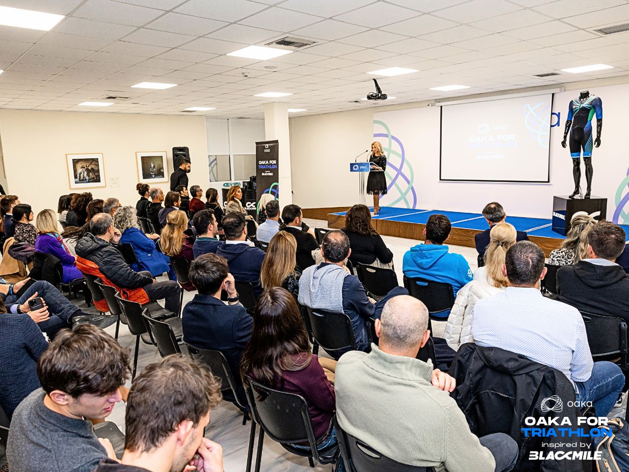 Η παρουσίαση της στολής πραγματοποιήθηκε μέσα από ένα εντυπωσιακό video με πρωταγωνιστές τους τριαθλητές - τριαθλήτριες Άλεξ Αργύρη, Μάνια Μπίκωφ, Γρηγόρη Σουβατζόγλου και τον Παραολυμπιονίκη Γεράσιμο Λιγνό. Κατά τη διάρκεια της γιορτής «OAKA for Triathlon» βραβεύτηκαν οι διοργανωτές αγώνων τριάθλου, οι οποίοι μοιράστηκαν με τους προσκεκλημένους τα όνειρά τους για την ανάπτυξη του αθλήματος.