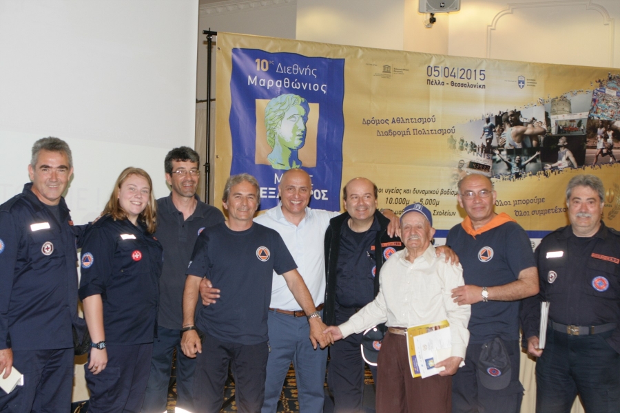 Κατόπιν πραγματοποιήθηκε η βράβευση των θεσμικών φορέων υποστήριξης του Μαραθωνίου (Ιερά Μητρόπολη Θεσσαλονίκης, Υπουργείο Μακεδονίας - Θράκης, Υπουργείο Πολιτισμού, Υπουργείο Παιδείας & Θρησκευμάτων, Υφυπουργείο Αθλητισμού, Γενική Γραμματεία Αθλητισμού, Υπουργείο Υγείας και Κοινωνικών Ασφαλίσεων, Υπουργείο Εθνικής Άμυνας, Ανώτατο Συμβούλιο Αθλητισμού Ενόπλων Δυνάμεων, Υπουργείο Τουρισμού, Υπουργείο Εξωτερικών, Υπουργείο Παραγωγικής Ανασυγκρότησης, Περιβάλλοντος και Ενέργειας, Περιφέρεια Κεντρικής Μακεδονίας, Δήμος Θεσσαλονίκης, Δήμος Αμπελοκήπων - Μενεμένης, Δήμος Πέλλας, Δήμος Χαλκηδόνας, Δήμος Δέλτα, Δήμος Κορδελιού - Ευόσμου, Περιφερειακή Διεύθυνση Εκπαίδευσης Κεντρικής Μακεδονίας, Διεθνής Έκθεση Θεσσαλονίκης ΔΕΘ-HELEXPO, Γ' Σώμα Στρατού /NRDC-GR, Γενική Αστυνομική Διεύθυνση Θεσσαλονίκης, Διεύθυνση Τροχαίας Θεσσαλονίκης, Αστυνομική Υποδιεύθυνση Γιαννιτσών - Πέλλας, Διεύθυνση Τροχαίας Πέλλας, Περιφερειακή Διοίκηση Πυροσβεστικών Υπηρεσιών Κεντρικής Μακεδονίας).