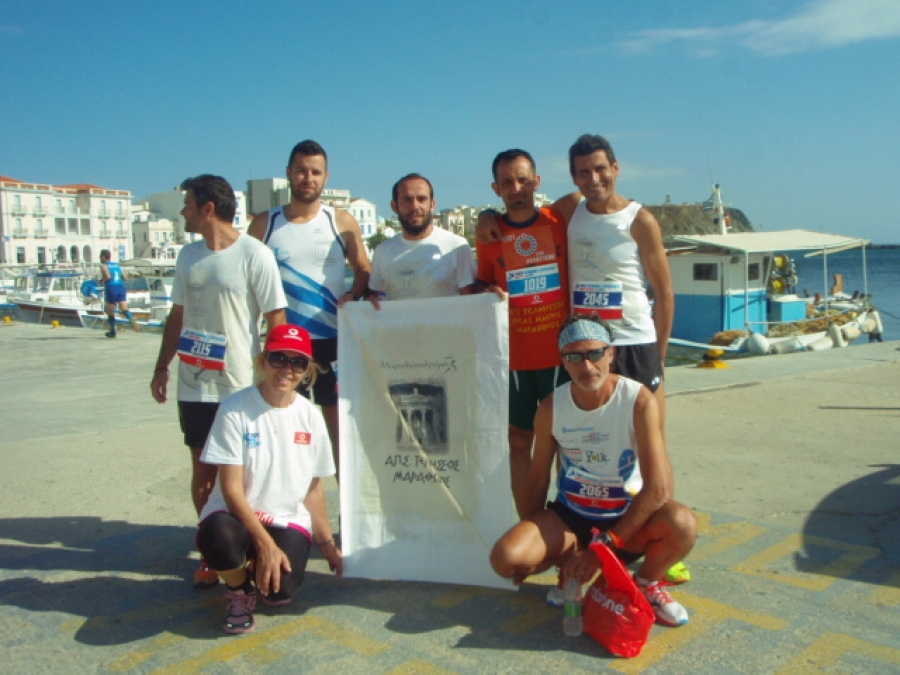 Αγαπητά μας μέλη και συναθλητές του Τελμησσου έδωσαν το παρόν τους και στα τρία αγωνίσματα. Ο αγώνας των 21 χλμ - Ημιμαραθωνιος την φετινή χρονιά είχε ως εκκίνηση το παραδοσιακό και πανέμορφο χωριό Βωλαξ με ενδιάμεση διαδρομή μέσα από άλλα ορεινά χωριά και σημεία της ενδοχώρας της Τήνου, και τερματισμό την κεντρική πλατεία δίπλα στο λιμάνι της Τήνου. Παράλληλα έγιναν και τα άλλα δυο αγωνίσματα με εκκίνηση και τερματισμό στην κεντρική πλατεία δίπλα στο λιμάνι της Τήνου, των 5 και 10χλμ. Άξιοι λοιπόν πολλών συγχαρητηρίων είναι οι συναθλητές μας και μέλη του Τελμησσου που συμμετείχαν και τερμάτισαν τον δύσκολο και απαιτητικό αγώνα των 21 χλμ λόγο των υψομετρικών διαφόρων και των έντονων ανέμων που έπνεαν, αλλά και στους αγαπητούς μας συναθλητές του Τελμησσου που έτρεξαν τα 5χλμ και τα 10χλμ. Συγκεκριμένα πολλά συγχαρητήρια στους Αλέξανδρο Κομεσαριο ,μέλος και αθλητής του Τελμησσου μόνιμου κάτοικου Τήνου), που μας είχε και μια πολύ συγκινητική έκπληξη στο χωριό του την Κώμη από όπου πέρναγε η διαδρομή των 21 χλμ , να μας περιμένει όλη η οικογένεια του αλλά και συγγενείς και φίλοι με τα πανό και λάβαρα του Τελμησσου,στον Γιάννη Μόσχο, στον Τηνιακο και μέλος του Τελμησσου Γιάννη Φυριγο, στον πάντα ακμαιότατο και κεφάτο Στέλιο Σαφρα, και τέλος στον Βλάση Καραβασιλη που τερμάτισε πρώτος νικητής στην γενική.Πολλά όμως συγχαρητήρια και στην Μαρία Τουρκαντωνη που τερμάτισε τον αγώνα των 5χλμ σε πολύ καλό ατομικό χρόνο, και στους αγαπητούς μας συναθλητές του Τελμησσου Σοφία Αρσενοπουλου, Βαγγέλη Παλιογιαννη, και Χρήστο Πεταρουδη, που τερμάτισαν τον αγώνα των 10χλμ σε πολύ καλή θέση. Άξιοι πολλών συγχαρητήριων όλα τα μέλη μας που συμμετείχαν για άλλη μια χρονιά στην Τήνο. Ραντεβού όλοι μας και το 2016 στην πανέμορφη και φιλόξενη Τήνο μας!!