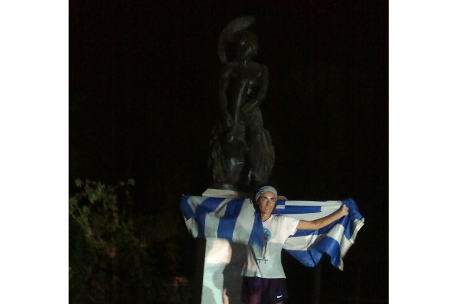 Μετά τον Ισθμό της Κορίνθου, τη Στέλλα συνόδευε (εκτός του συζύγου της Ηλία και του φυσιοθεραπευτή της Αντρέα) ο Τάκης Σκουλής και από το ύψος του Δαφνιού φίλοι δρομείς και ποδηλάτες, στην πλειοψηφία τους του Απόλλωνα Δυτικής Αττικής συμπεριλαμβανομένων του Κώστα Σάμιου, του Σπύρου Σπυρόπουλου (Φειδιππίδειος Αθλος 2011) και του Παύλου Γορανίτη με τη σύζυγό του Αιμιλία. Περισσότεροι όμως ήταν οι φίλαθλοι που περίμεναν να υποδεχτούν και χειροκροτήσουν τη Στέλλα στο Θησείο.