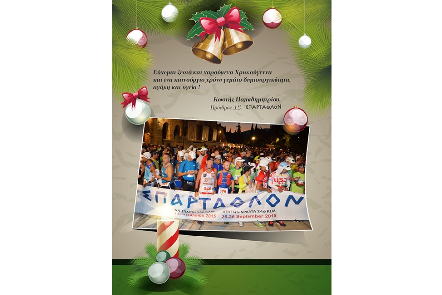 Ο Πρόεδρος του Διεθνή Συνδέσμου ΣΠΑΡΤΑΘΛΟΝ κ. Κωστής Παπαδημητρίου σας εύχεται ζεστά και χαρούμενα Χριστούγεννα και ένα καινούργιο χρόνο γεμάτο δημιουργικότητα, αγάπη και υγεία!