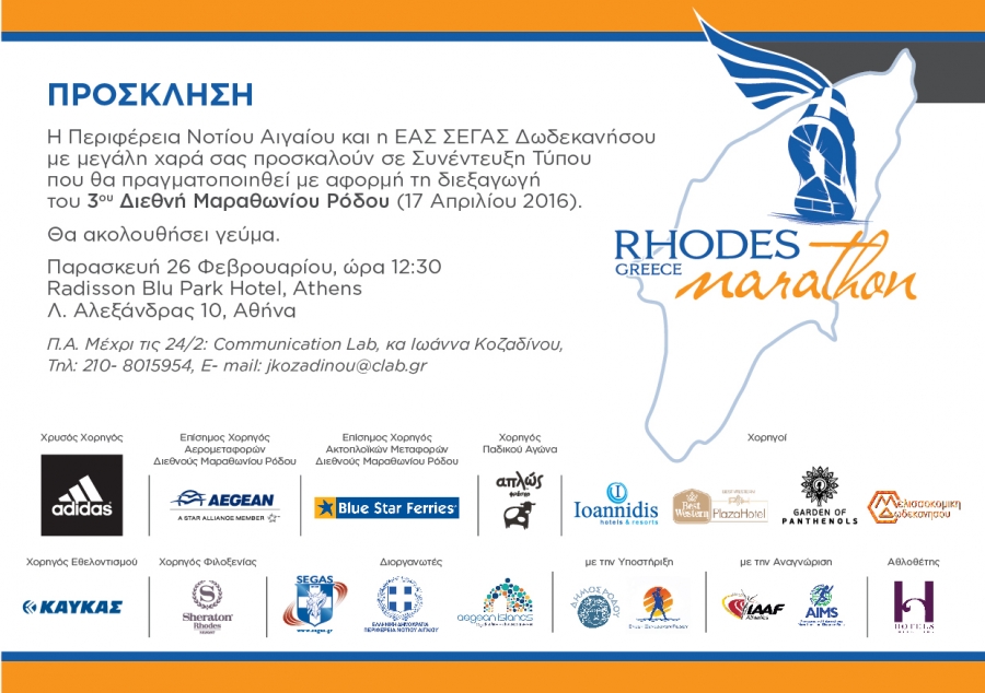 ΔΕΛΤΙΟ ΤΥΠΟΥ - Την Παρασκευή 26 Φεβρουαρίου η συνέντευξη Τύπου για το Μαραθώνιο της Ρόδου