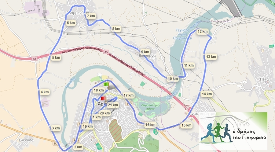Η διαδρομή είναι ασφάλτινη, με σημείο εκκίνησης την πύλη του Μεσαιωνικού κάστρου της Άρτας και τερματισμού στην πλατεία "Εθνικής Αντιστάσεως" (Κεντρική πλατεία Άρτας). Η διαδρομή του αγώνα έχει σχεδιαστεί έτσι ώστε να περνάει από τα σημαντικότερα ιστορικά σημεία της πόλης και φυσικά από το ξακουστό γεφύρι της Άρτας.