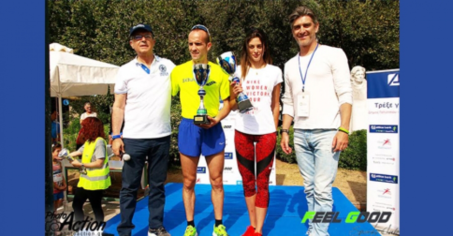 Απονομή ανδρών των 10 χιλιομέτρων από την Αναστασία Καρακατσάνη, πρωταθλήτρια μεγάλων αποστάσεων