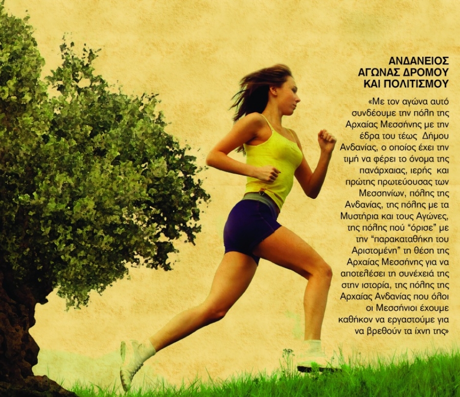 «Με τον αγώνα αυτό συνδέουμε την πόλη της Αρχαίας Μεσσήνης με την έδρα του τέως Δήμου Ανδανίας, ο οποίος έχει την τιμή να φέρει το όνομα της πανάρχαιας, ιερής και πρώτης πρωτεύουσας των Μεσσηνίων, πόλης της Ανδανίας, της πόλης με τα Μυστήρια και τους Αγώνες, της πόλης πού «όρισε» με την «παρακαταθήκη του Αριστομένη» τη θέση της Αρχαίας Μεσσήνης για να αποτελέσει τη συνέχειά της στην ιστορία, της πόλης της Αρχαίας Ανδανίας που όλοι οι Μεσσήνιοι έχουμε καθήκον να εργαστούμε για να βρεθούν τα ίχνη της»