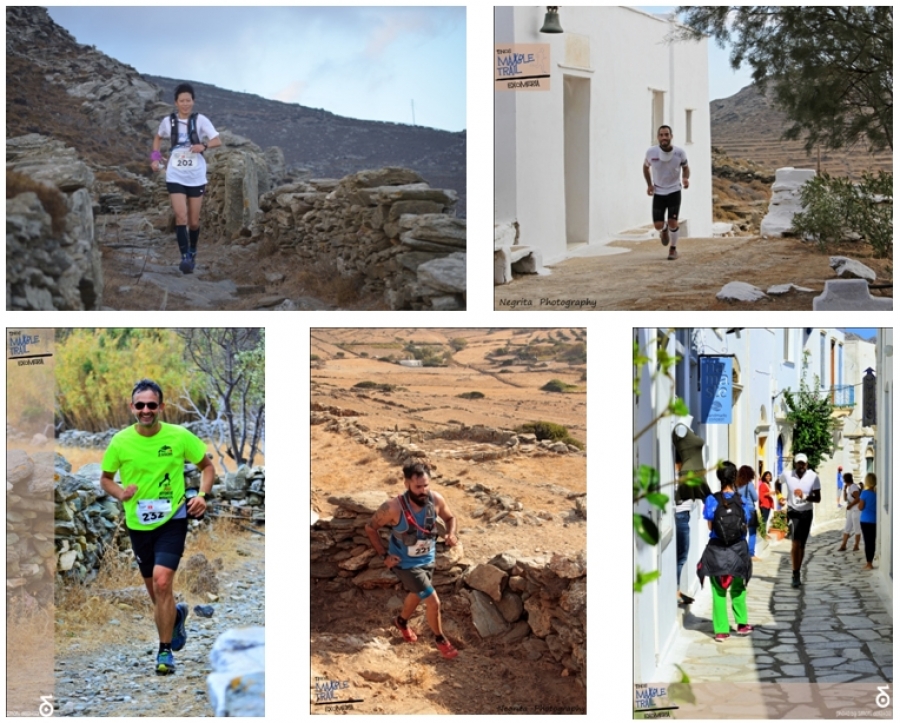 Μετά τον εκκωφαντικό ήχο ενός τριμπονιού (παραδοσιακού όπλου) οι αθλητές ξεχύθηκαν στα σοκάκια του οικισμού του Πύργου καταλήγοντας στο κεντρικό μονοπάτι που τους οδήγησε σε ένα αγώνα περιπέτειας και δράσης. Η διαδρομή πραγματικά μαγική περνώντας από πέντε χωριά (Πύργο,Πλατιά,Ρόχαρι,Πάνορμος,Μαρλά,Μαμάδο) καθώς και από τον ερειπωμένο οικισμό του Ισμαήλ γενέτειρα πατρίδα του Γιαννούλη Χαλεπά. Οι εικόνες μοναδικές περάσματα από παραλίες, βράχια, ξερολιθιές, Μοναστήρια με φόντο το Αιγαίο Πέλαγος.