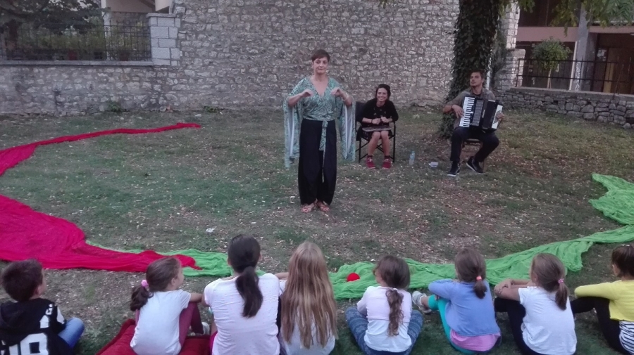 Μικροί και μεγάλοι έμαθαν γιατί το δάφνινο στεφάνι στολίζει τους νικητές και ποια σχέση είχαν οι μυθικοί ήρες με το τρέξιμο, υπό τους ήχους της μουσικής του Αντώνη Γκουλιώνη στο ακορντεόν και της Ευτυχίας Ζαβογιάννη στο μεταλλόφωνο.