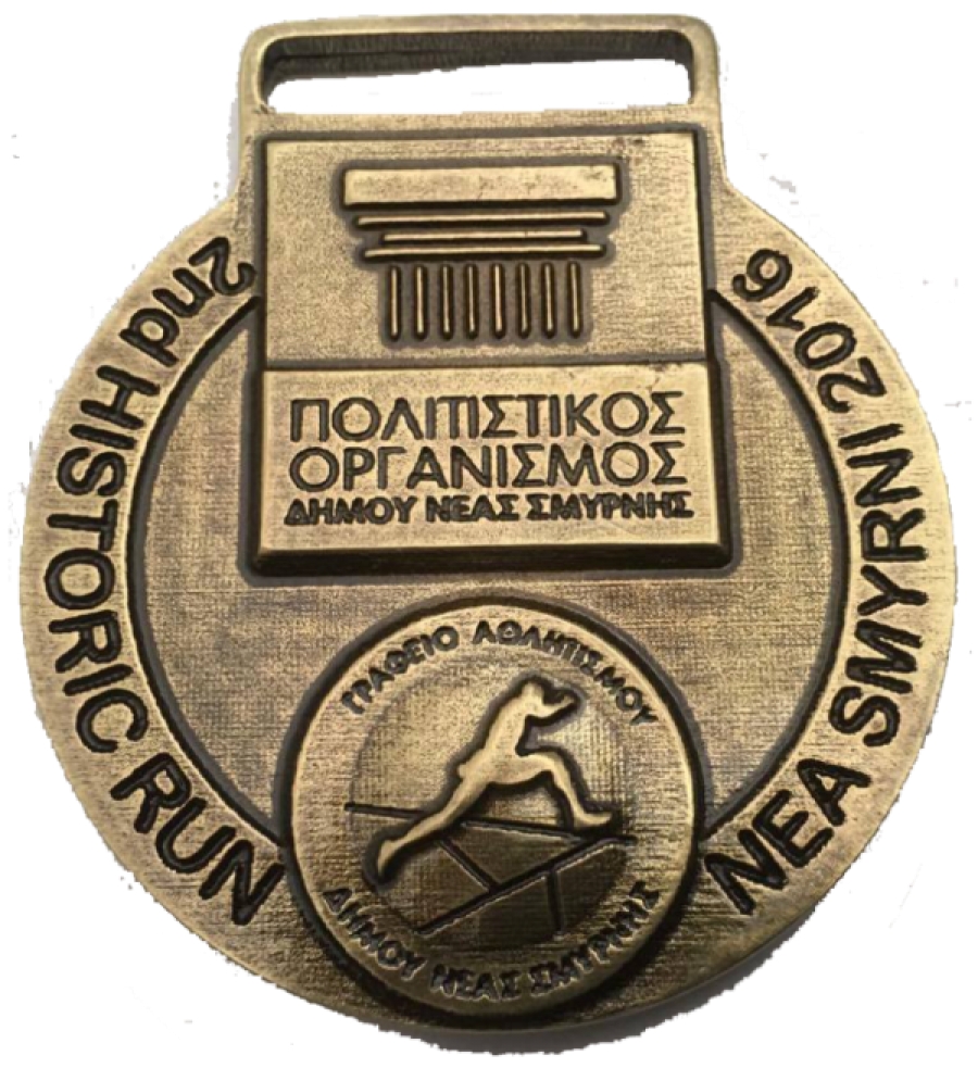 Στη μία όψη το κάθε μετάλλιο έχει αποτυπωμένο το λογότυπο της διοργάνωσης – τρεις δρομείς οι οποίοι τρέχουν μπροστά από το εμβληματικό κωδωνοστάσιο της Αγίας Φωτεινής – και στη δεύτερη φέρει τα λογότυπα του Πολιτιστικού Οργανισμού και του Γραφείου Αθλητισμού του Δήμου Νέας Σμύρνης.