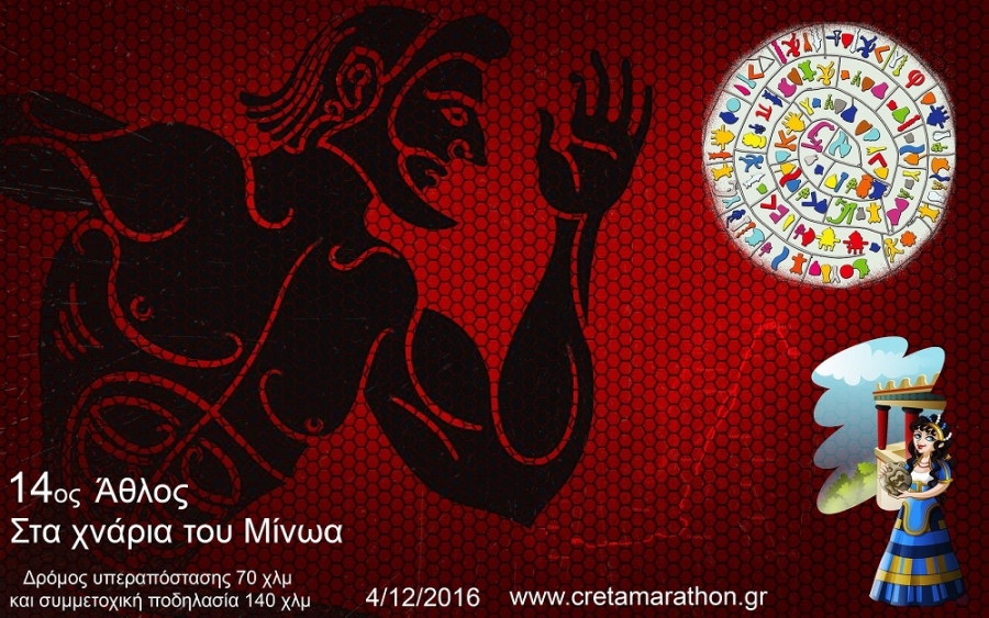 Σταθμοί ανεφοδιασμού για τον Μινωικό άθλο 70 χλμ: στο 7οχλμ. Μοίρες- 16ο Αρχαιολογικός Χώρος Γόρτυνας- 21χλμ. (που είναι και το πρώτο τσεκ αθλητών) -26χλμ στην διακλάδωση προς Μούλια-32 χλμ Αγία Βαρβάρα- Διακλάδωση προς Αγ. Θωμά-42χλμ(τσεκ μαραθωνίου) περιοχή Σίβας-50 χλμ διασταύρωση προς Δαφνές -54 χλμ διασταύρωση προς Αθάνατους-Γιόφυρος- Χανιόπορτα (εθνικό στάδιο Ηρακλείου)- Όαση- Μπεντεβή.