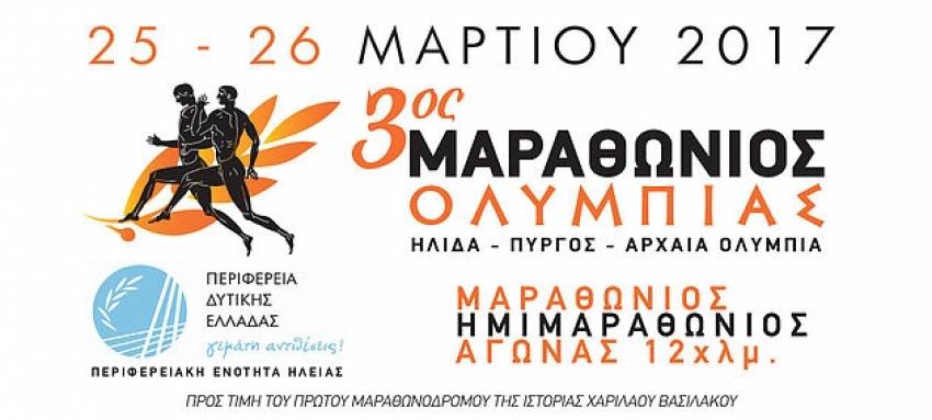 Έως και την Τετάρτη 22 Μαρτίου θα διαρκέσουν οι εγγραφές για τον 3ο Μαραθώνιο Ολυμπίας που θα διεξαχθεί το τελευταίο Σαββατοκύριακο του Μαρτίου. Έτσι, όσοι θέλουν να ζήσουν τη μοναδική εμπειρία αυτών των αγώνων θα έχουν ακόμα μερικές ημέρες στη διάθεσή τους για να κάνουν την εγγραφή τους (δήλωση και πληρωμή) ή να την ολοκληρώσουν (πληρωμή).