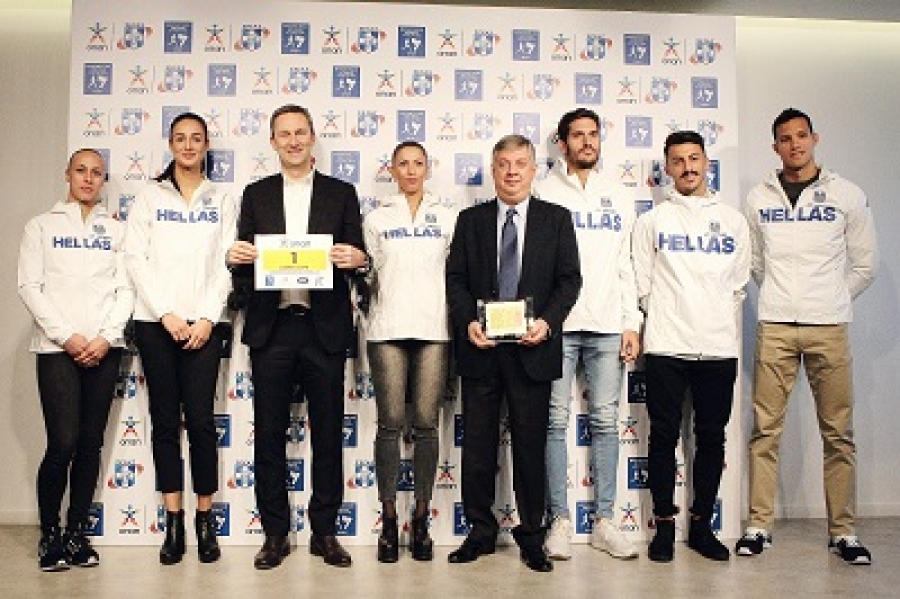 Ο πρόεδρος του ΣΕΓΑΣ Κώστας Παναγόπουλος χάρισε στον διευθύνοντα σύμβουλο του ΟΠΑΠ τον πρώτο αριθμό του φετινού 35ου Μαραθωνίου της Αθήνας.